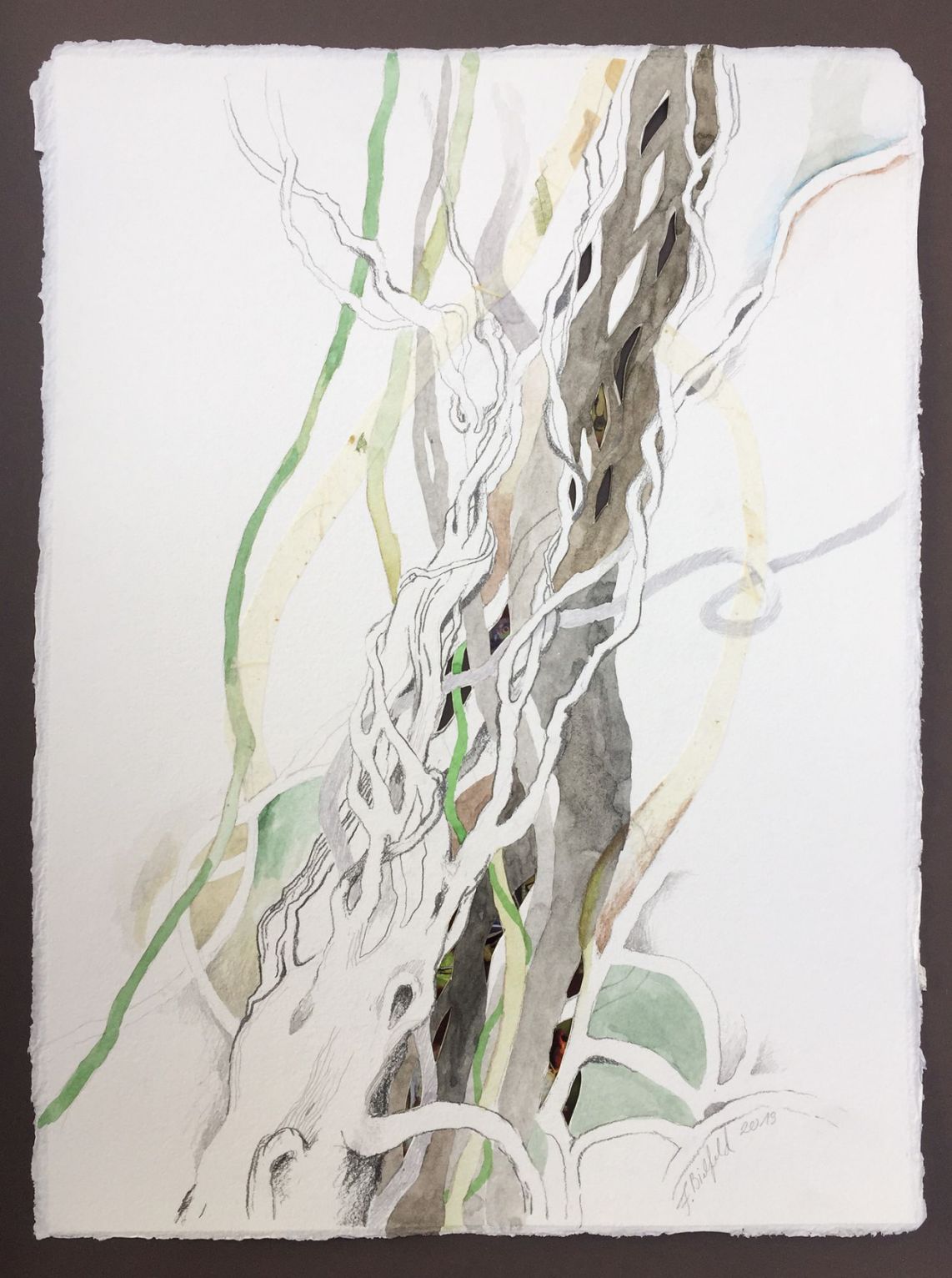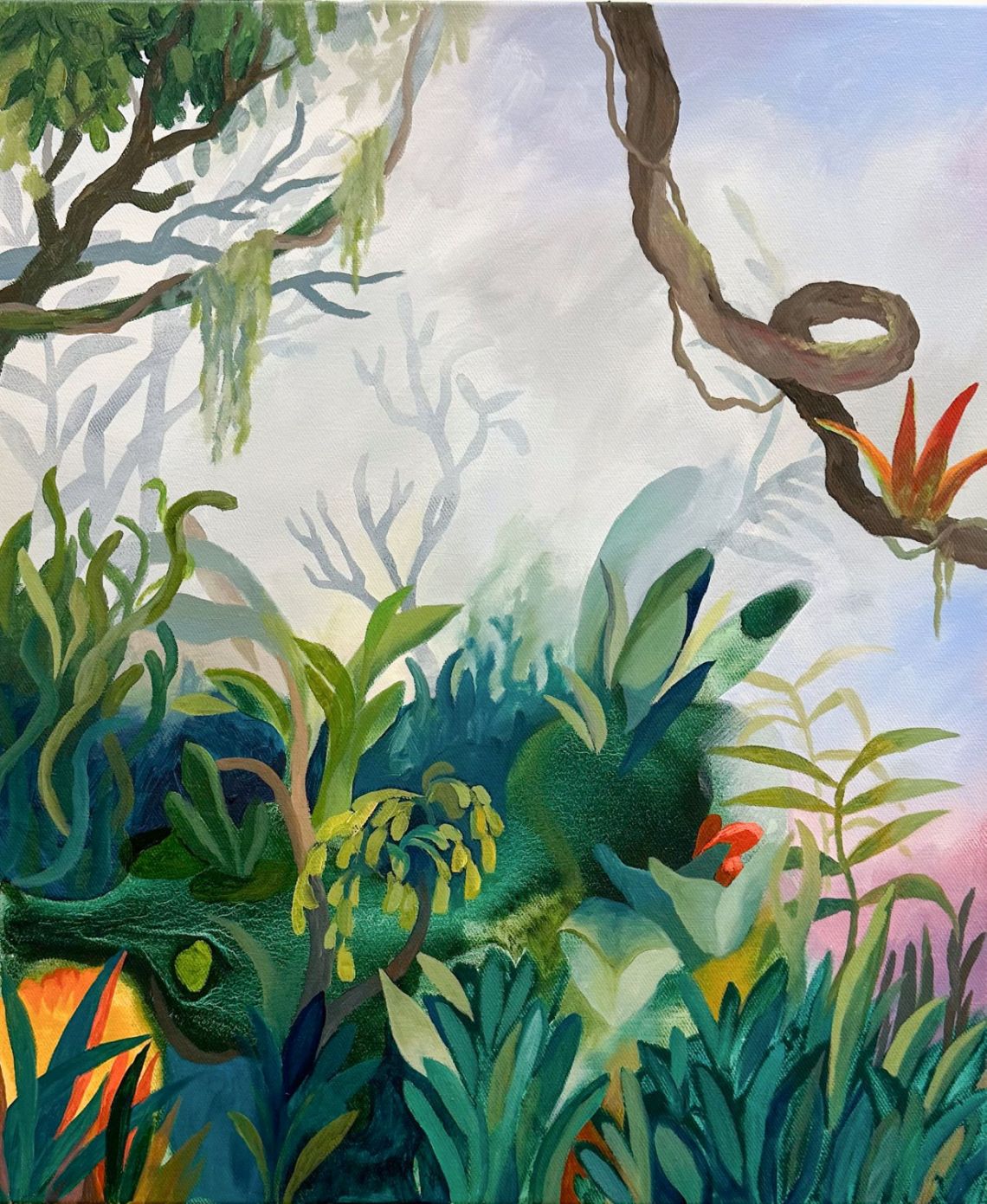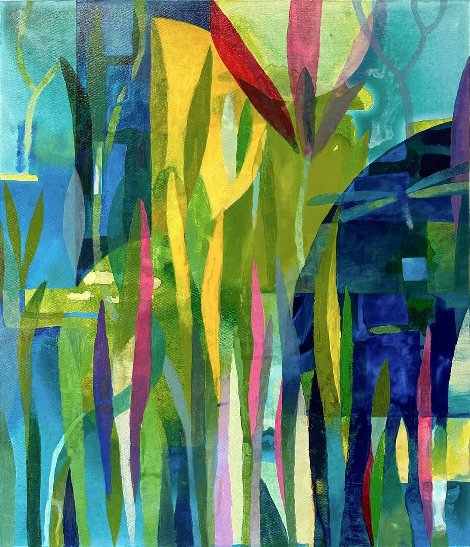 Meine Arbeiten beziehen sich hauptsächlich auf die Natur und Pflanzenwelt und beziehen sich - im Kontext dieser Ausstellung - auf das Thema „Zeit“. Die Bilderserie „230 km/h Hamburg-Berlin“ zeigt eine Landschaft im Vorbeifahren, die Details verschwinden, man nimmt Einzelheiten nur kurz wahr. Anders ist das, wenn man sich durch einen Urwald bewegt: Man kommt nur langsam voran und muss jede Einzelheit im Blick haben.