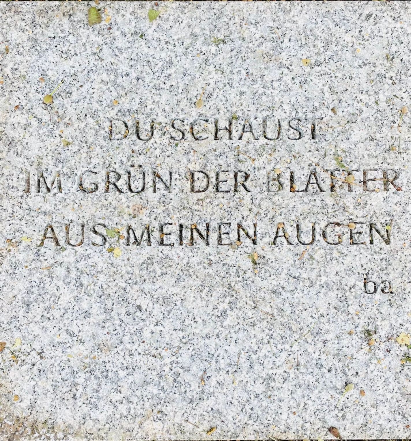 Auf dem Oldesloer Friedhof an der Hamburger Straße wurden Steinplatten mit kurzen Versen von Barbara Schleth verlegt. Eine Anregung zum Innehalten, Trost und Zuversicht spendend, oder Gedanken in den Weg streuend.