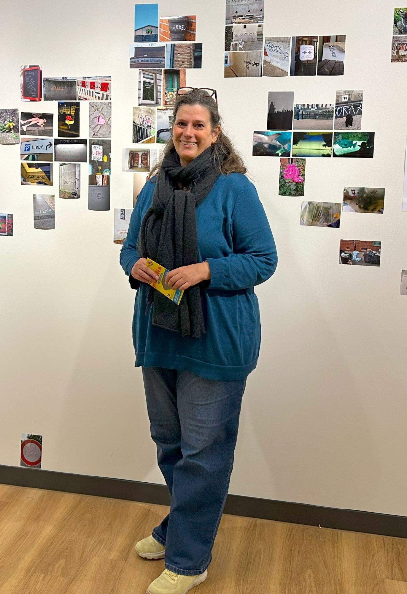 Vom Wort kommend, begann sie um die Jahrtausendwende, Geschichten auch in Bildern zu erzählen: In ihrem Fotoprojekt #underconstruction zeigt sie hier Straßenfotografie, ordnet sie in Bildwelten zu inneren und äußeren Räumen, Träumen, dem Spiel – und lässt Besuchende aktiv teilhaben: Sie können sich beim Betrachten berühren lassen, die Bilder neu kuratieren und umhängen – oder wiederkommen und ein eigenes Foto passend zum Format und der Ausstellung hineinschummeln. So entsteht jeden Tag ein neues Werk im Dialog, dessen Wandel bis zur Finissage dokumentiert wird.