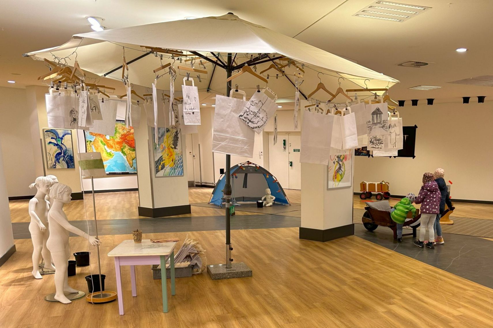 Aber wir wollten auch kein beliebiges Präsentieren von Bildern machen: Einen "Rahmen" bzw. ein Grundthema sollte die Ausstellung haben. "Ungestört spielen... träumen... Zeit" kann auf unterschiedlichste Weise interpretiert und wahrgenommen werden, darf Fragen aufwerfen und anecken, und die teilnehmenden Künstlerinnen und Künstler haben sich Gedanken gemacht, wie Besucher:innen interaktiv teilnehmen können.