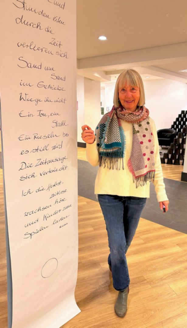 Ilse Magdalene Siebel erzählt zu jedem Bild eine persönliche Geschichte, Barbara Schleth liest lyrische Texte, die in Zusammenhang mit den Bildern entstanden sind.